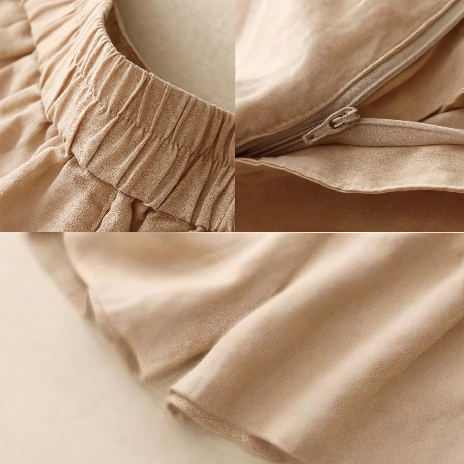 Pantalones cortos de lino y algodón con bolsillos para mujer, informales , de verano, con bordado floral, plisados, con cremallera y botones - Trigo - US8-10,UK/AU12-14,EU40-42 (2XL) - image 22