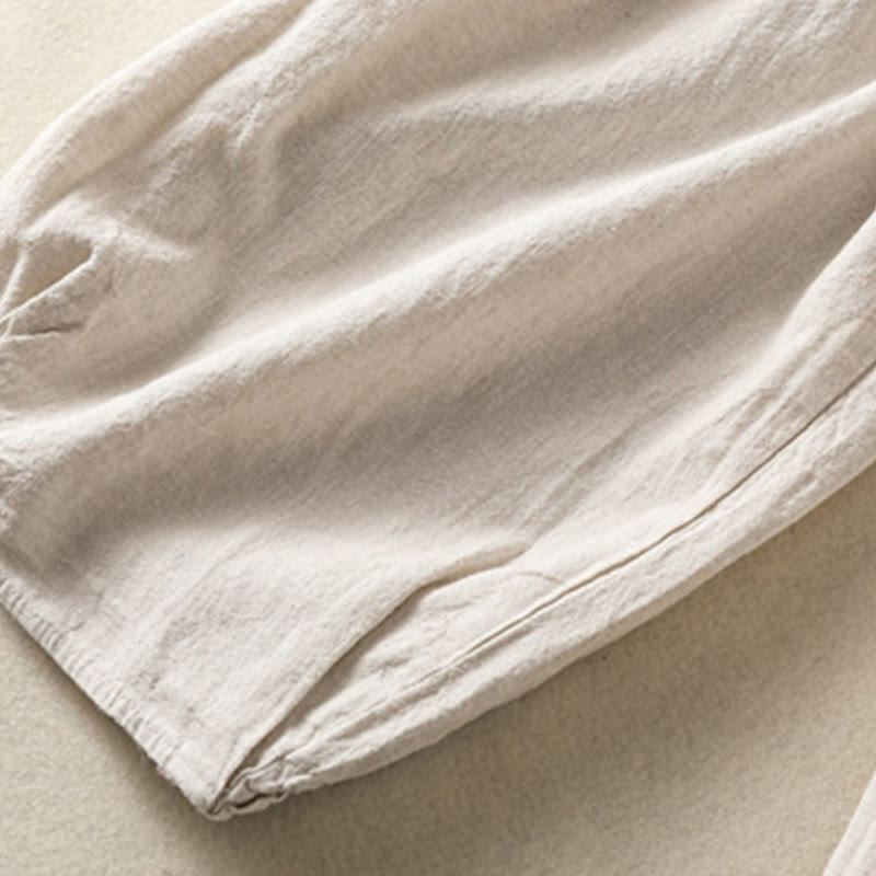 Pantalones estilo harén de lino y algodón con bolsillos para mujer, estilo Buddha Stones, color liso, diseño sencillo, largo 7-8, cintura alta