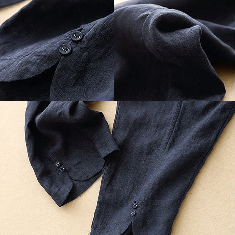Pantalones harén de lino y algodón para mujer con diseño de botones laterales de color liso y bolsillos de Buddha Stones para verano - image 23