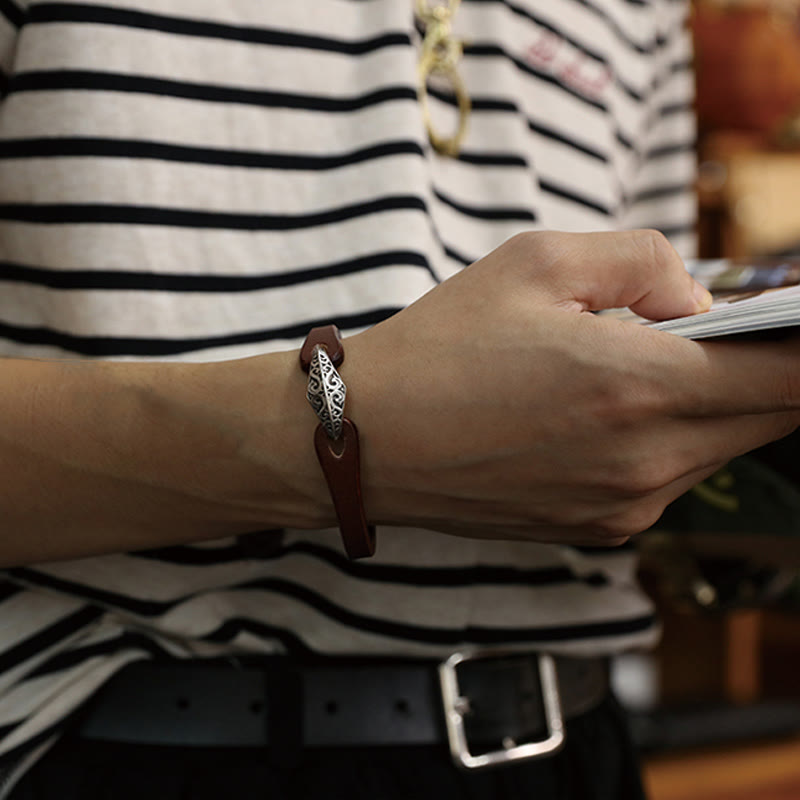 Símbolo de fuerza : las pulseras de cuero suelen asociarse con la fuerza y la resistencia. El material en sí es duradero y simboliza la capacidad del portador para soportar desafíos y dificultades.