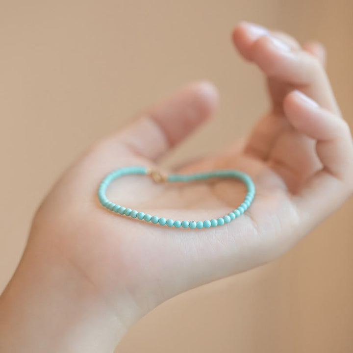 La Pulsera de la Sabiduría Turquesa cuenta con cuentas ultrafinas de turquesa con detalles de cobre bañado en oro de 14k. Conocida por sus poderosas propiedades curativas, la turquesa promueve la claridad mental y la sabiduría . Esta pulsera sirve como recordatorio de fuerza y guía interior , lo que la hace perfecta para quienes buscan comprensión y crecimiento personal. Úsala para fomentar la toma de decisiones reflexivas y una conexión más profunda con tu verdadero ser. 💕