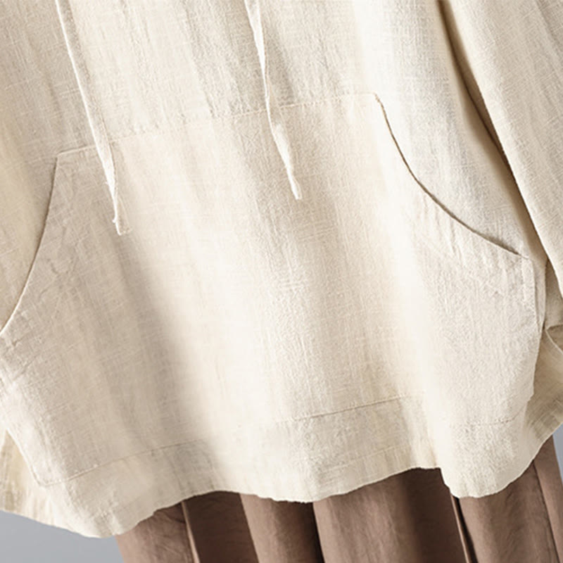 Sudadera con capucha de algodón de manga larga con botones lisos y bolsillos para mujer de Buddha Stones