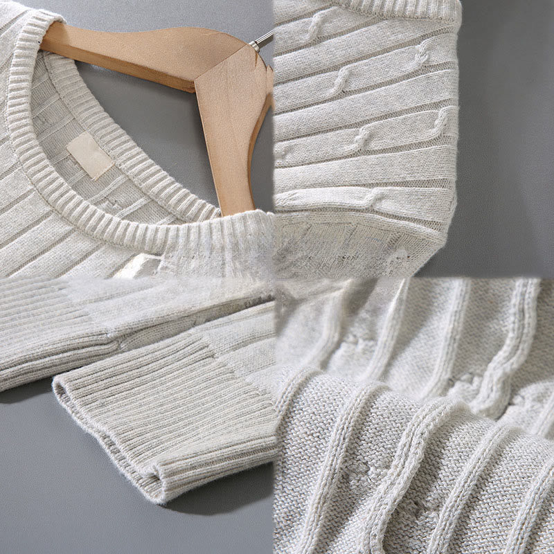 Suéter de algodón puro de manga larga y cuello redondo para hombre con diseño de punto trenzado Buddha Stones
