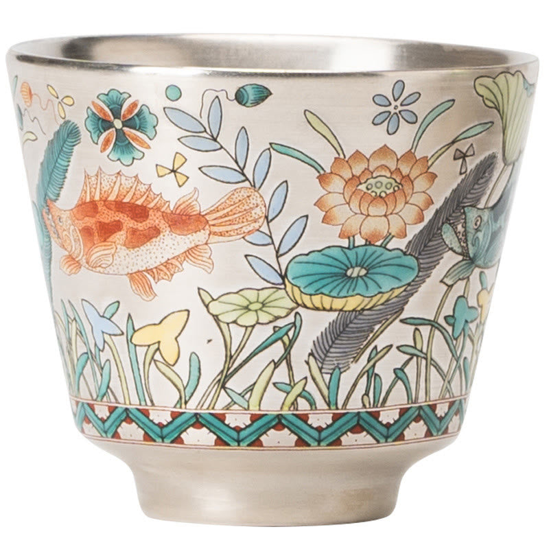 Taza de té de kung fu con diseño de algas, loto y pez, de Buddha Stones, 45 ml, con caja de regalo