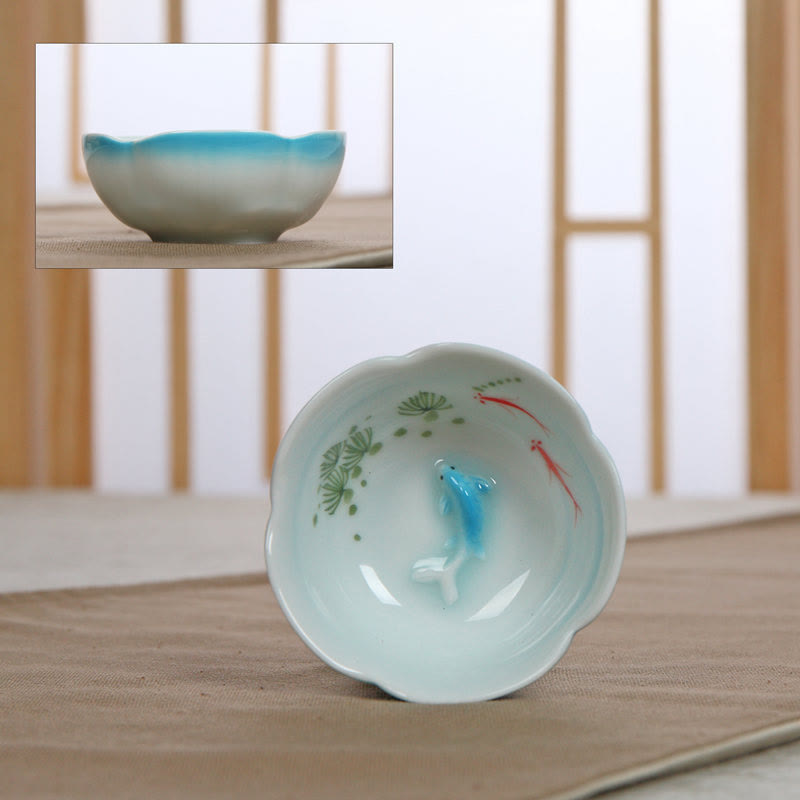 Taza de té de kung fu con mano de loto y pez koi de piedras de Buddha Stones - Pez koi rojo y loto azul 8,8 cm x 3 cm x 3,5 cm - image 5