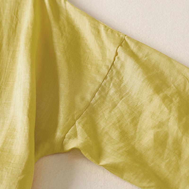 Vestido midi de algodón y lino para mujer, de manga larga, liso, con botones de rana y Buddha Stones - image 20