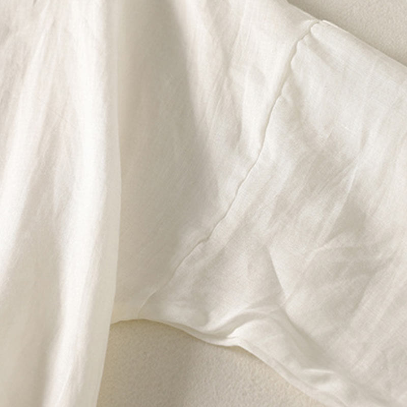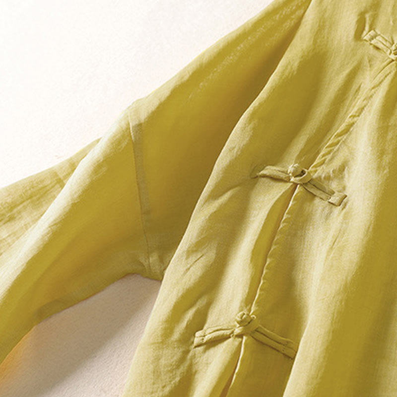 Vestido midi de algodón y lino para mujer, de manga larga, liso, con botones de rana y Buddha Stones
