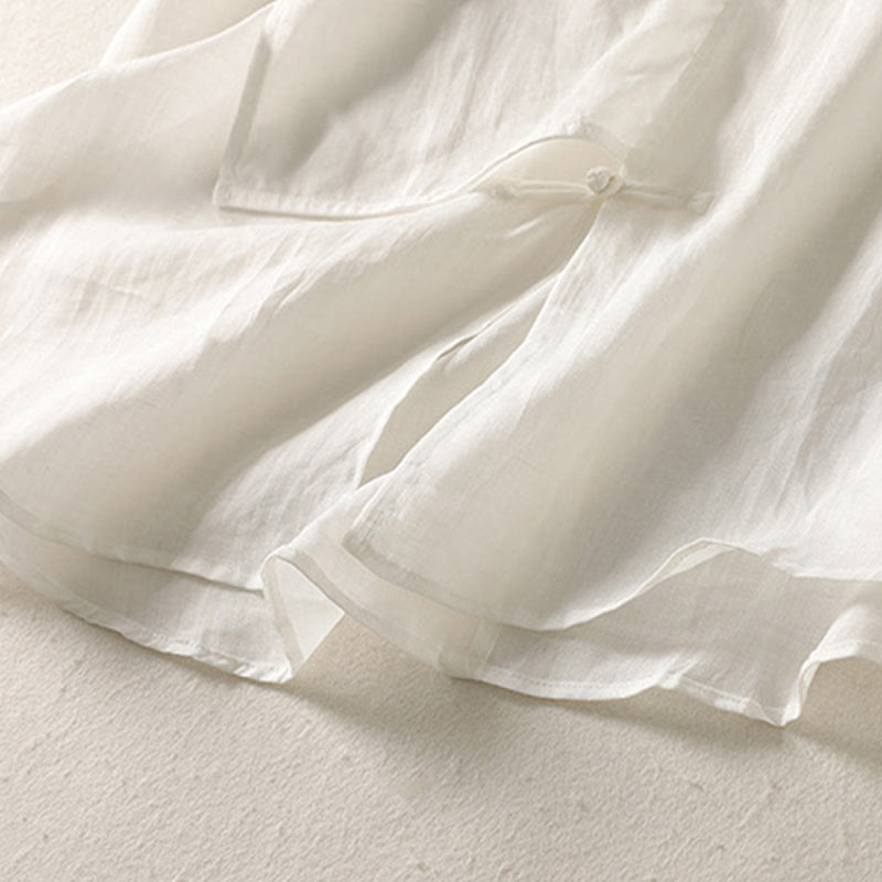 Vestido midi de algodón y lino para mujer, de manga larga, liso, con botones de rana y Buddha Stones - image 21