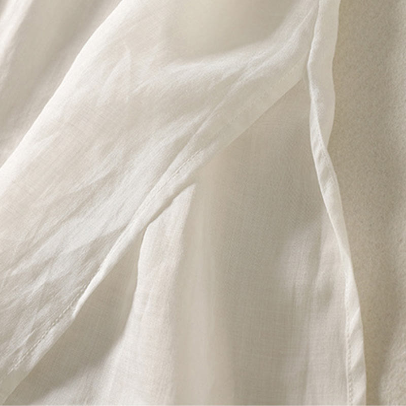 Vestido midi de algodón y lino para mujer, de manga larga, liso, con botones de rana y Buddha Stones - FloralBlanco - US8-10,UK/AU12-14,EU40-42 (2XL) - image 6