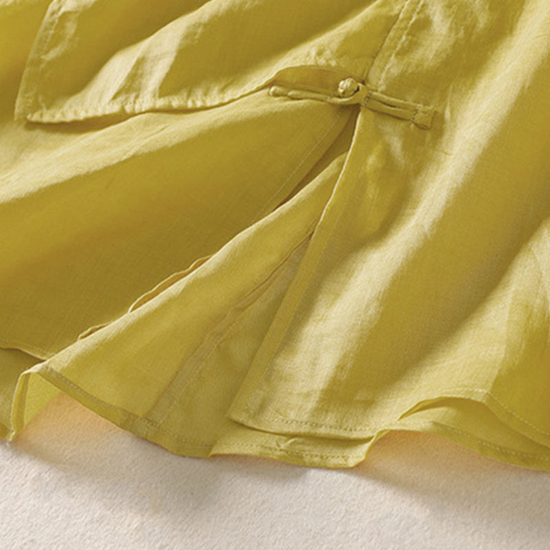 Vestido midi de algodón y lino para mujer, de manga larga, liso, con botones de rana y Buddha Stones - image 24