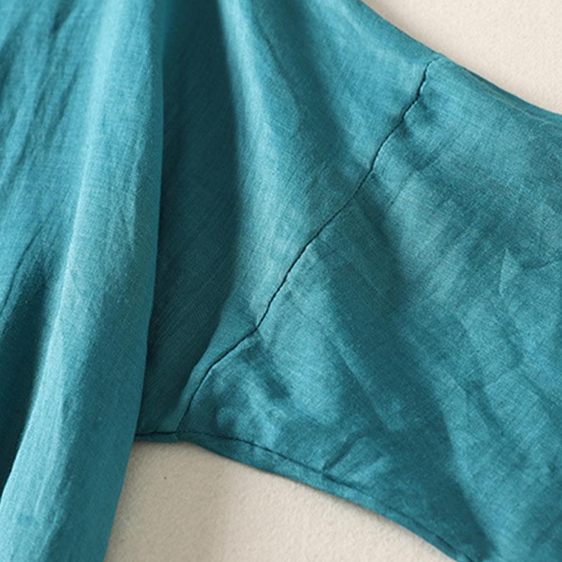 Vestido midi de algodón y lino para mujer, de manga larga, liso, con botones de rana y Buddha Stones - Cian oscuro - US8-10,UK/AU12-14,EU40-42 (2XL) - image 17