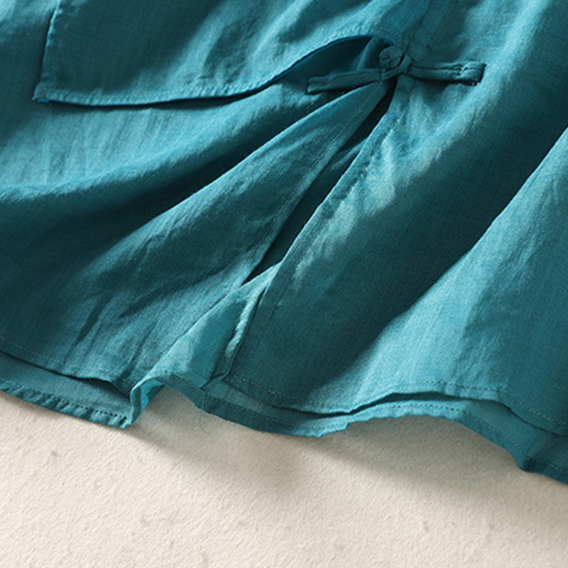 Vestido midi de algodón y lino para mujer, de manga larga, liso, con botones de rana y Buddha Stones - image 18