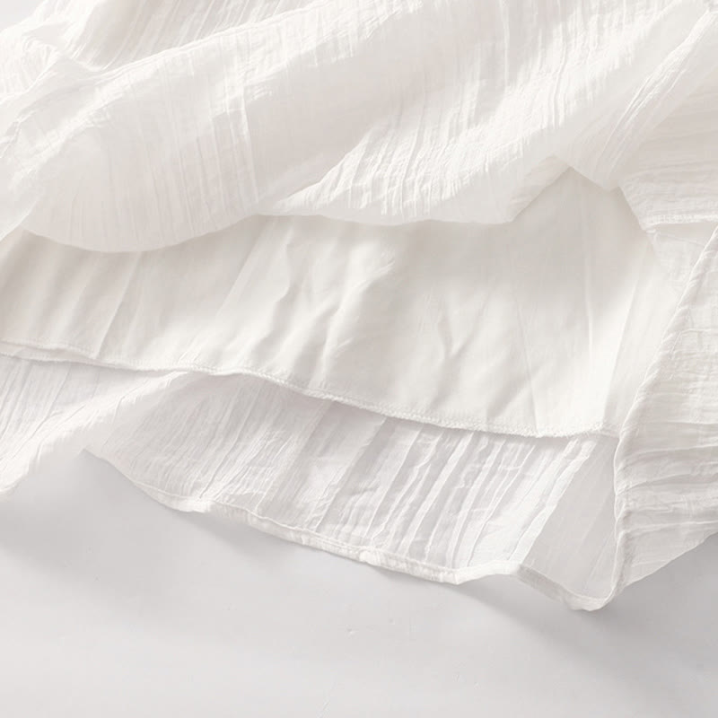 Vestido midi informal de verano con bordado liso y doble capa de algodón y lino de manga corta con Buddha Stones - Blanco - US8-10,UK/AU12-14,EU40-42 (2XL) - image 22
