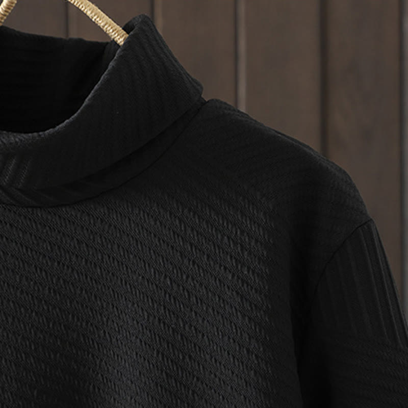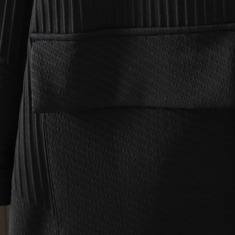 Vestido midi de algodón con cuello alto, manga larga y bolsillo, diseño irregular en color puro con Buddha Stones - Negro - US8-10,UK/AU12-14,EU40-42 (2XL) - image 0