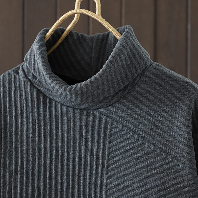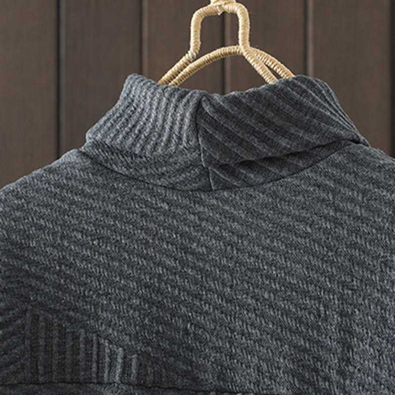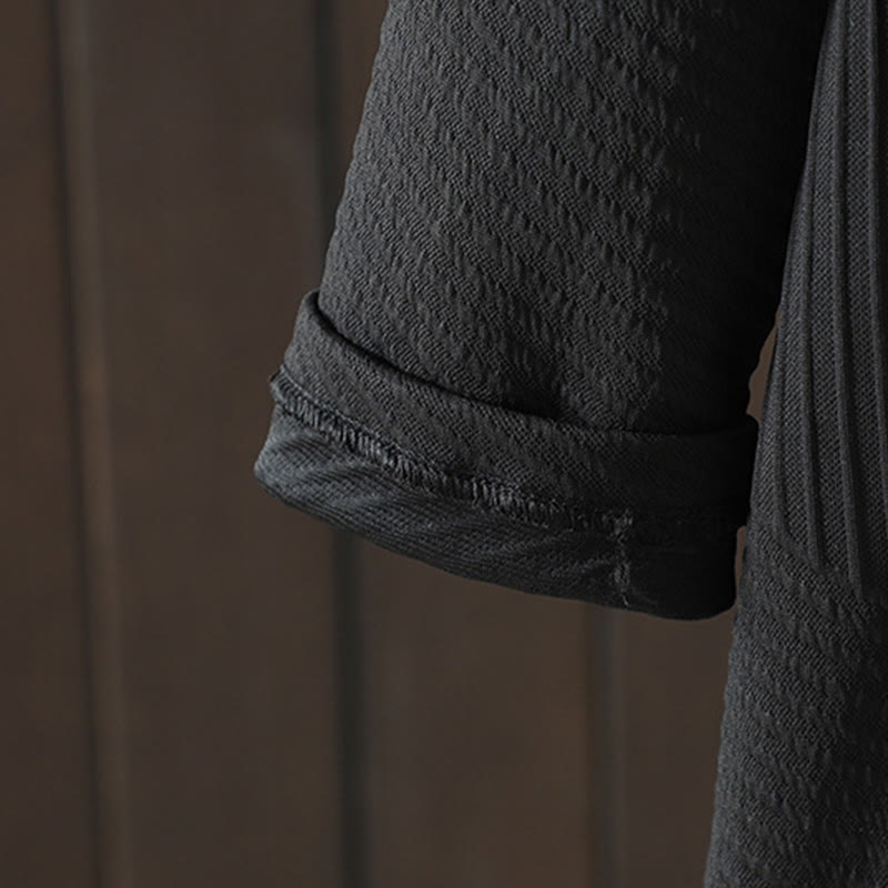 Vestido midi de algodón con cuello alto, manga larga y bolsillo, diseño irregular en color puro con Buddha Stones