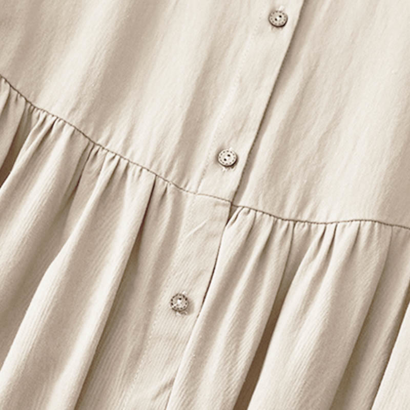 Vestido midi de algodón con solapa y diseño de botones en color puro de Buddha Stones Commute, manga larga - image 12
