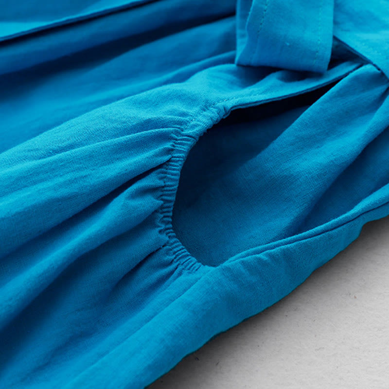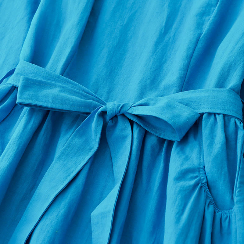 Vestido midi de algodón para mujer con diseño de Buddha Stones , manga larga, cordones y bolsillos - Azul cielo profundo - US8-10,UK/AU12-14,EU40-42 (2XL) - image 0