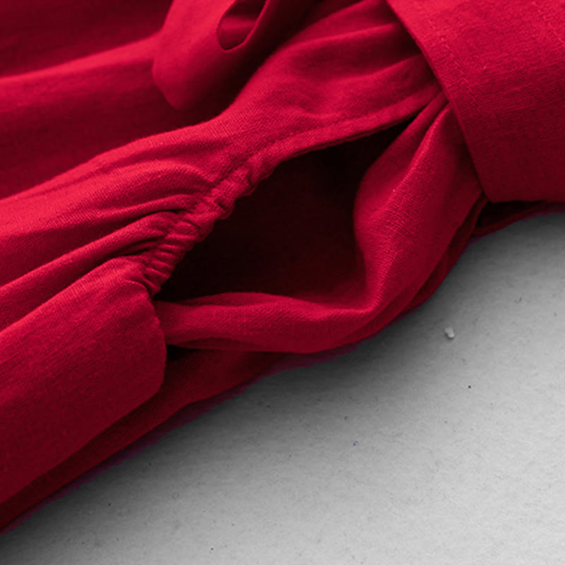 Vestido midi de algodón para mujer con diseño de Buddha Stones , manga larga, cordones y bolsillos - Rojo - US8-10,UK/AU12-14,EU40-42 (2XL) - image 11