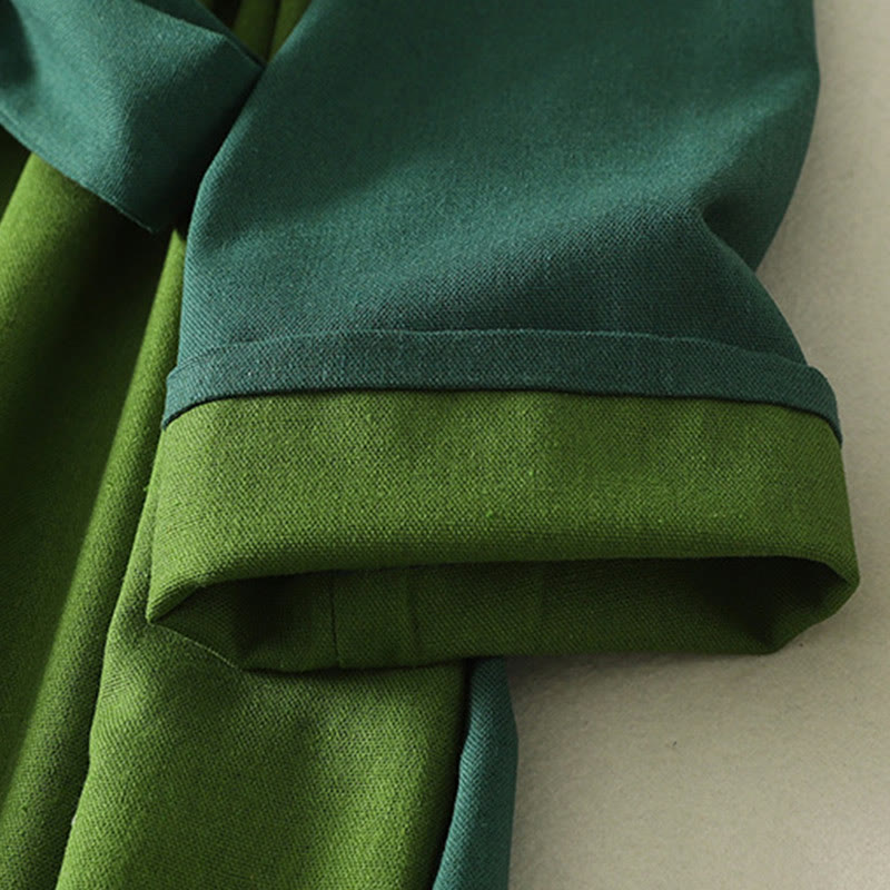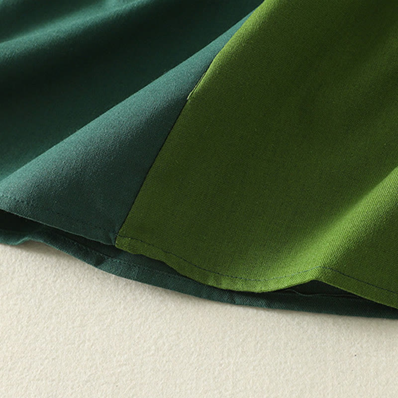 Vestido midi de algodón para mujer, de manga larga y bolsillos, con diseño de bloques de color y parches de Buddha Stones - Verde oscuro - US8-10,UK/AU12-14,EU40-42 (2XL) - image 0