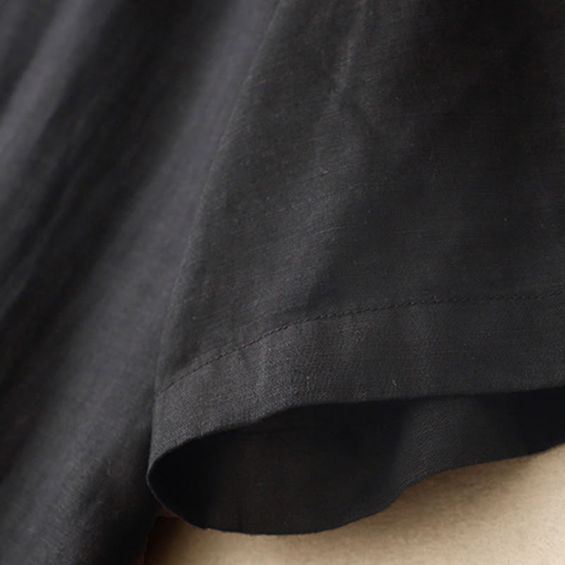 Vestido midi de lino y algodón de manga corta con bolsillos y diseño de botones de colores puros de Buddha Stones Commute - Negro - US8-10,UK/AU12-14,EU40-42 (2XL) - image 9