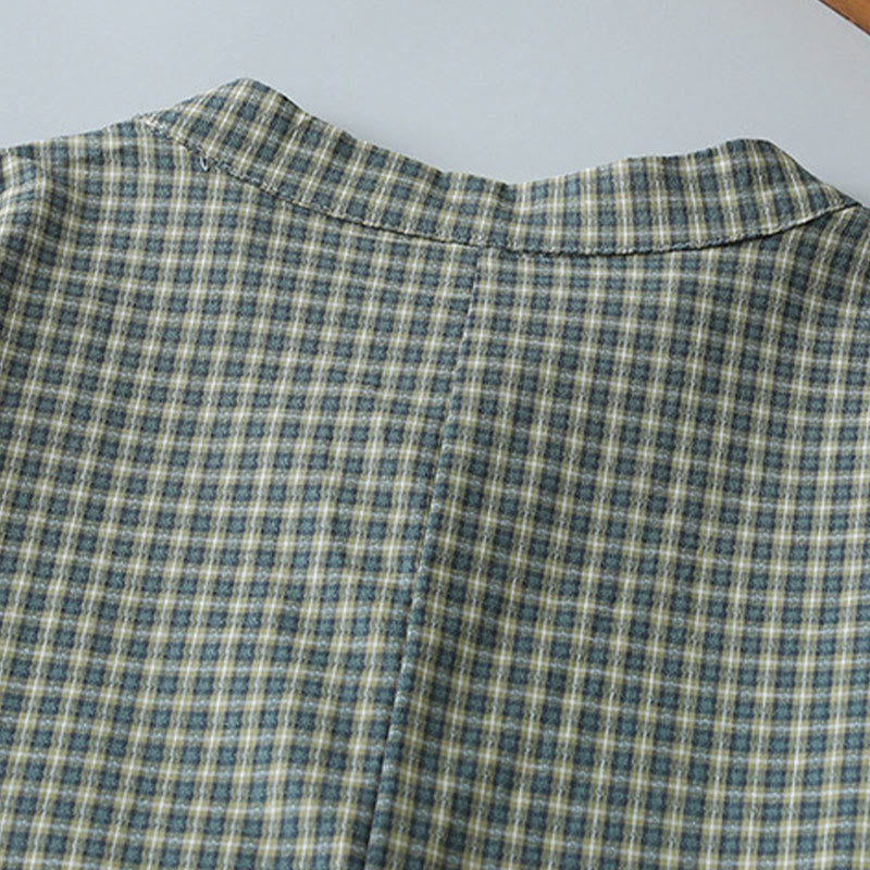 Vestido midi informal de algodón con mangas largas y botones a cuadros de Buddha Stones - image 7
