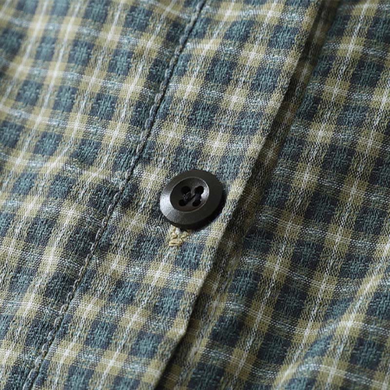 Vestido midi informal de algodón con mangas largas y botones a cuadros de Buddha Stones
