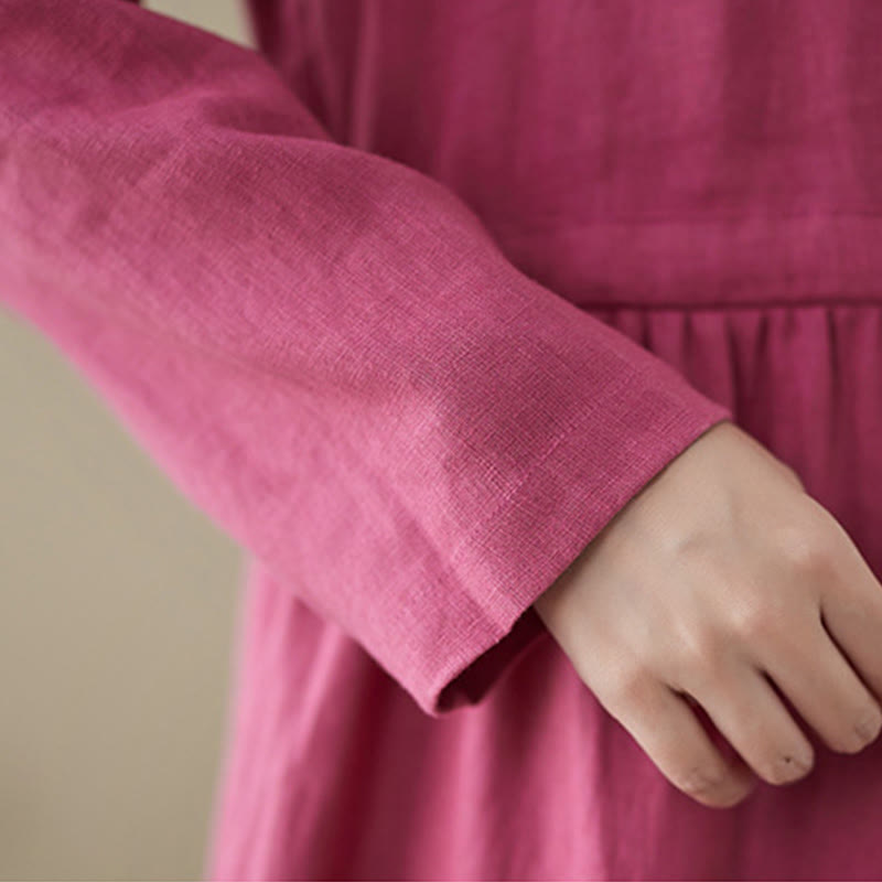 Vestido midi informal de lino y algodón con cuello redondo, cordones y bolsillos de Buddha Stones - Rosa - US8-10,UK/AU12-14,EU40-42 (2XL) - image 12