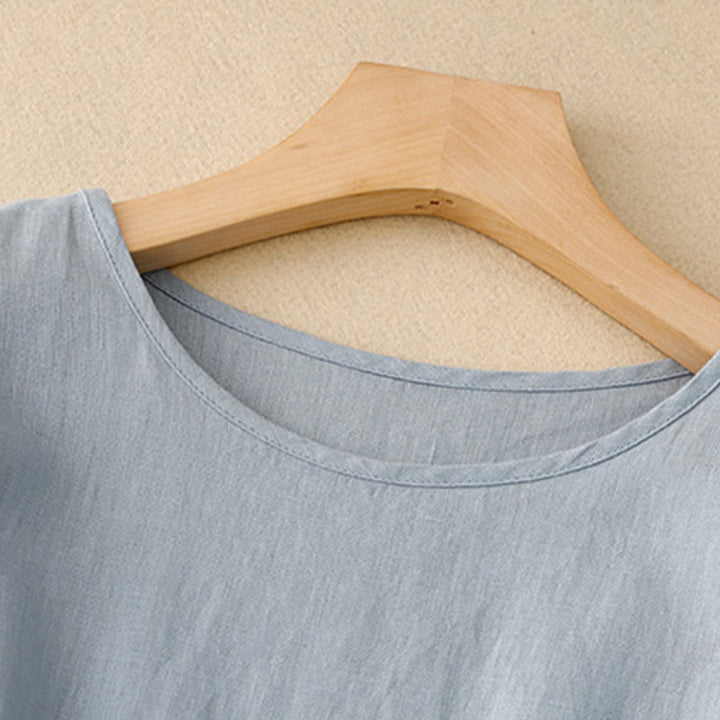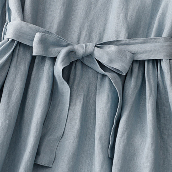 Vestido midi informal de lino y algodón con cuello redondo, mangas cortas, cordones y bolsillos de Buddha Stones - image 9