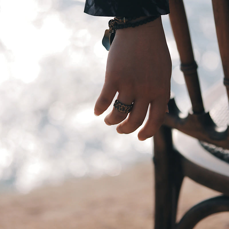 Anillo de la suerte de latón y cobre con diseño de textura tibetana