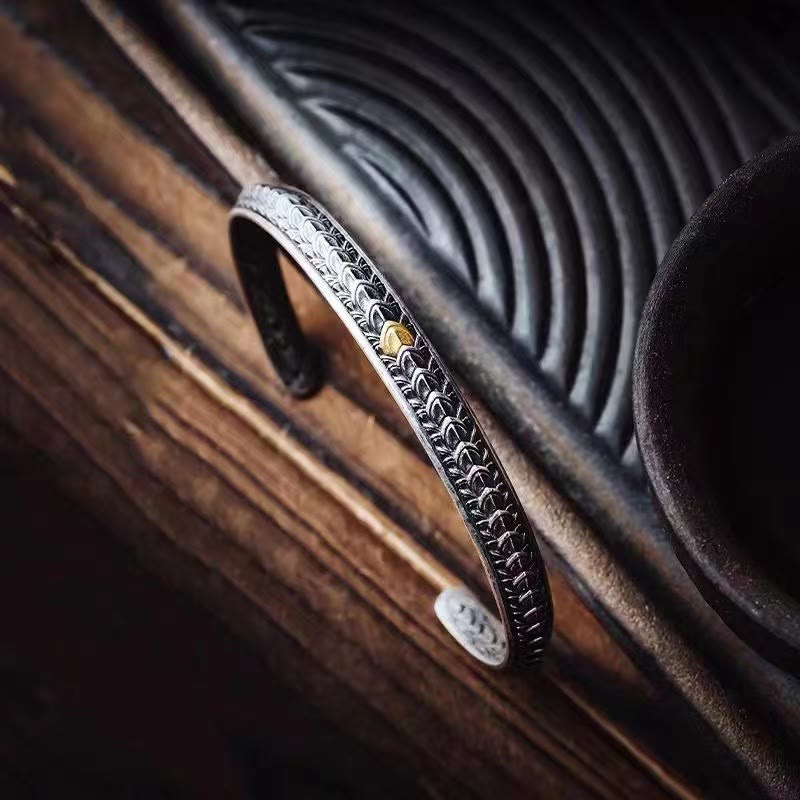 Brazalete de pulsera con diseño de escamas de dragón vintage con Buddha Stones