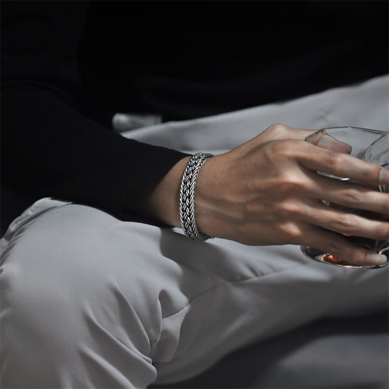 Pulsera de cadena curativa trenzada con patrón de tótem de vid retro con Buddha Stones