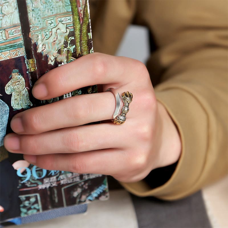 Anillo ajustable de cobre con diseño grabado de Dorje Vajra tibetano, Buddha Stones , suerte y riqueza
