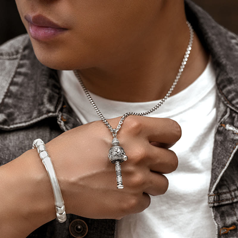 Este collar con colgante tibetano de rueda de oración Om Mani Padme Hum presenta el mantra de seis palabras verdaderas , que simboliza el amor, la sabiduría, la paz y la creatividad. Hecho de materiales de alta calidad y elaborado por expertos artesanos, es un accesorio significativo y único que trae un cambio positivo.