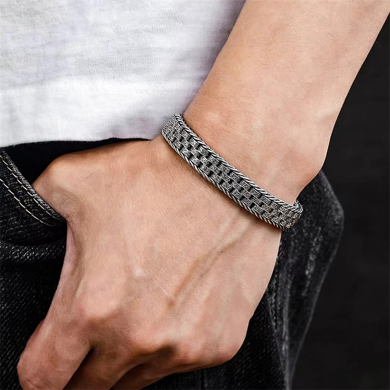 Pulsera de cadena de cobre con diseño de flores de la dinastía Tang, Om Mani Padme Hum tibetano con Buddha Stones