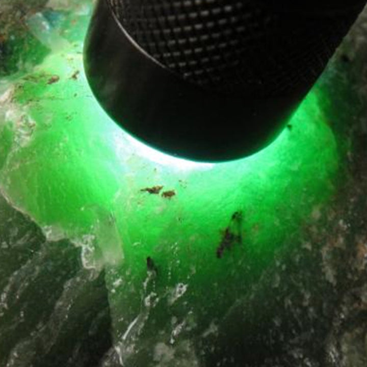 El jade cian es una nefrita translúcida de color verde espinaca.