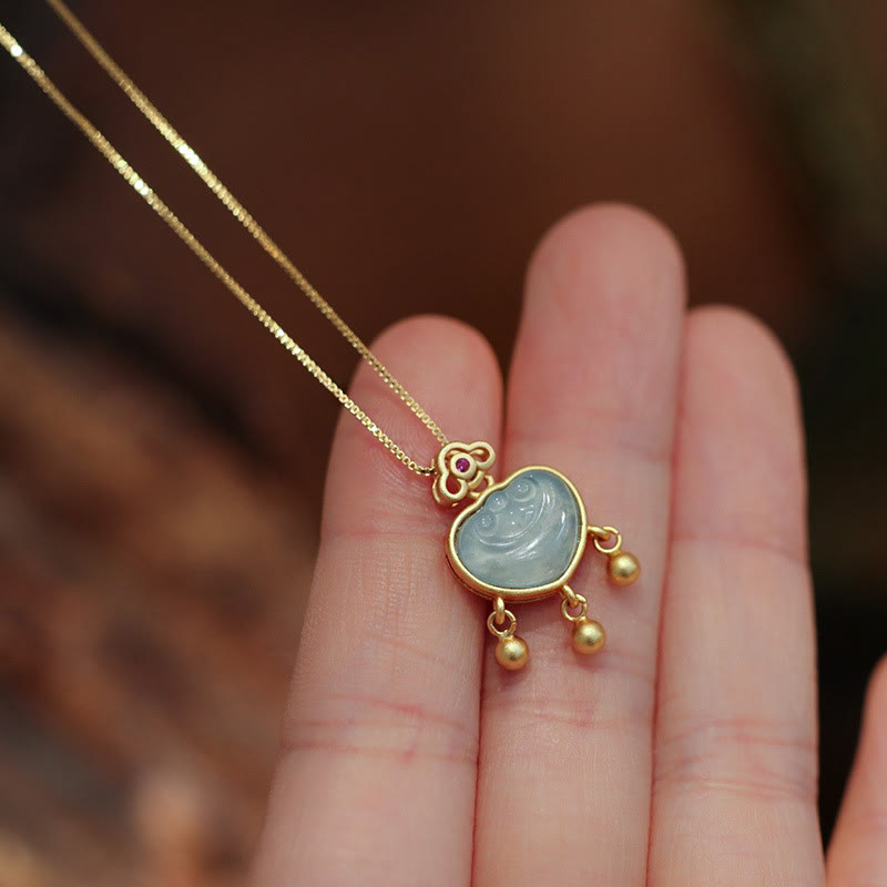 Buddha Stones de Plata de Ley 925, calcedonia de Jade Natural, candado de buenos deseos, collar de suerte, pulsera con colgante