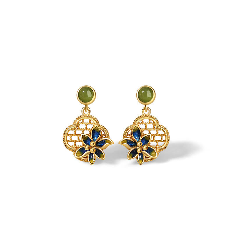 • material: jade cian hetiano, perla, plata de ley 925; parte metálica de los postes del pendiente: postes de plata de ley 925