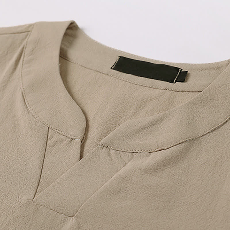 Buddha Stones Camiseta de manga corta con cuello de muesca y bordados para hombre, de algodón y lino, ideal para el verano. - image 7