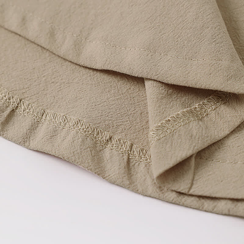 Buddha Stones Camiseta de manga corta con cuello de muesca y bordados para hombre, de algodón y lino, ideal para el verano.