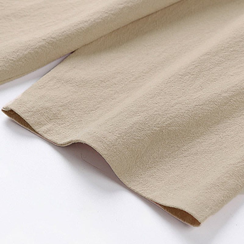 Buddha Stones Camiseta informal de verano de algodón y lino con cuello redondo y media manga para hombre - image 4