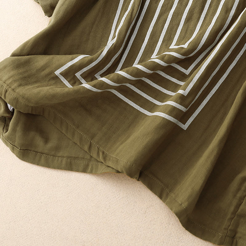 Buddha Stones Camiseta de lino y algodón de manga corta con estampado de líneas informales para mujer - image 22