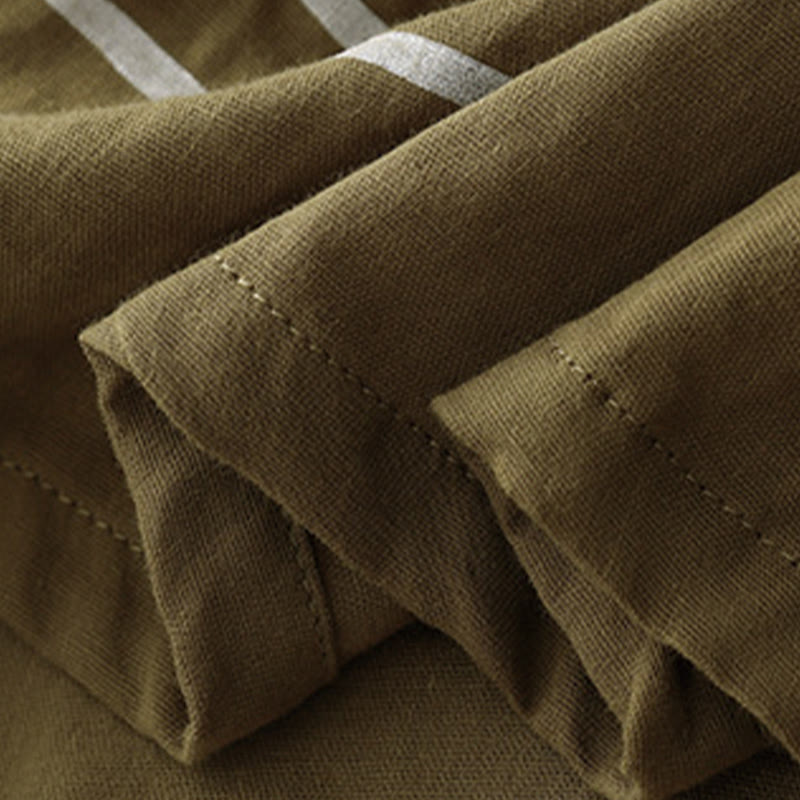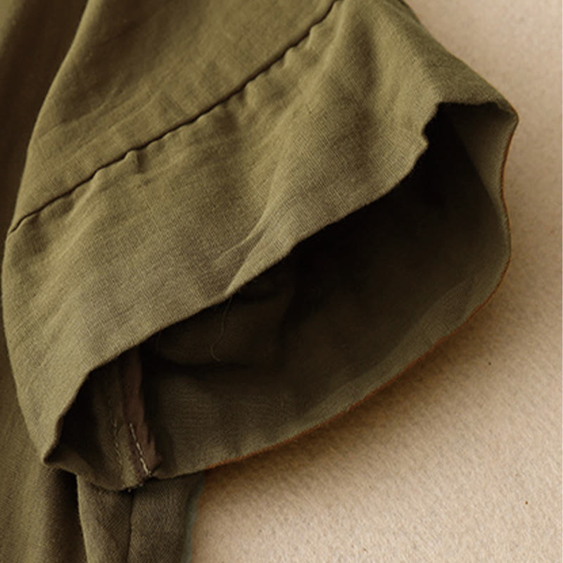 Buddha Stones Camiseta de lino y algodón de manga corta con estampado de líneas informales para mujer - Aceituna - US12, UK/AU16, EU44 (2XL) - image 0