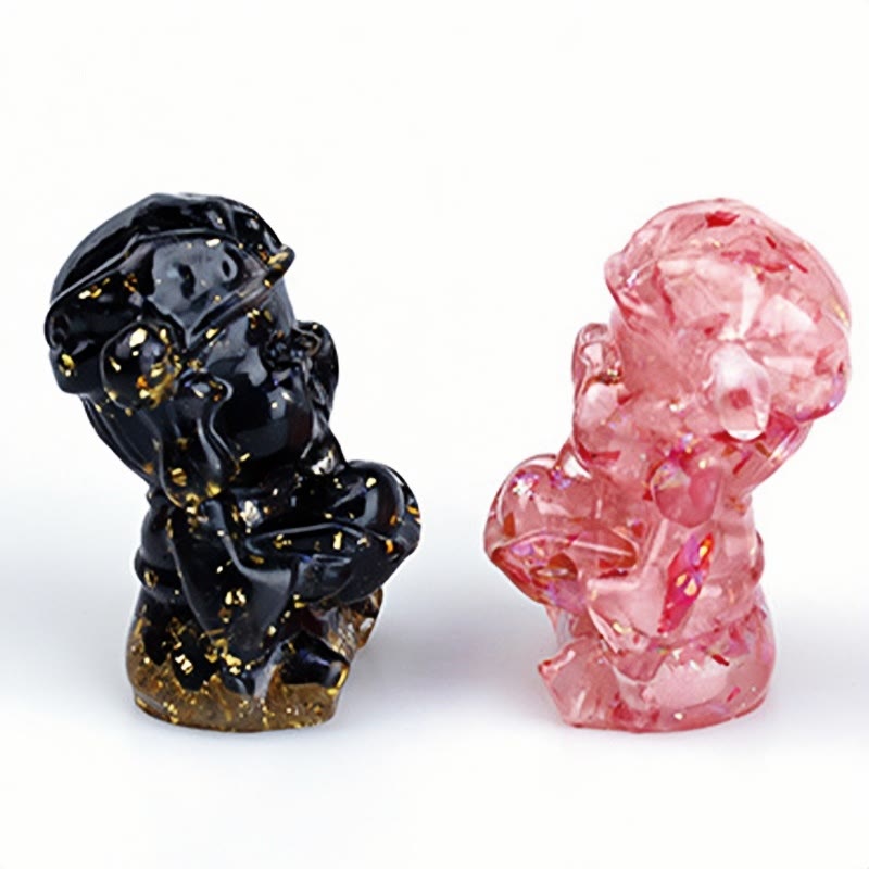 - Material: Amatista con lámina de oro, amatista, cristal rosa, citrino, ágata sakura, turmalina, ojo de tigre, obsidiana negra, cuarzo rutilado, labradorita, jaspe rojo, lazurita, piedras diversas, coral rojo, concha blanca, cristal blanco, resina.
