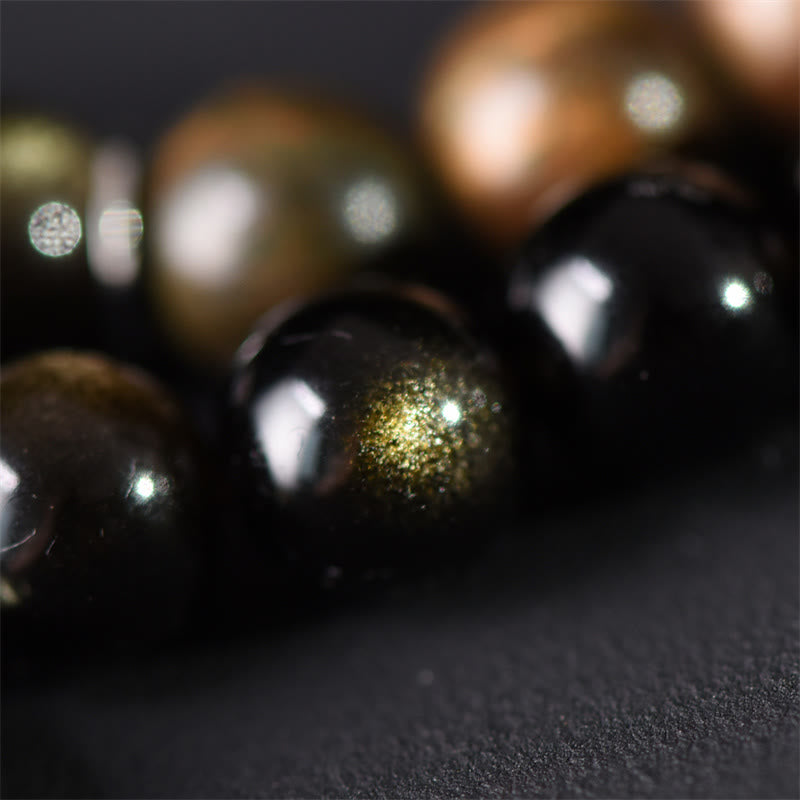 La obsidiana dorada es un tipo de obsidiana que contiene una sustancia dorada brillante. Se considera que tiene el efecto de resistir, absorber la energía negativa y proteger el cuerpo, y se utiliza a menudo en cálculos adivinatorios y predicciones del futuro. El efecto de la obsidiana con brillo dorado es más fuerte que el de la obsidiana común: puede aumentar la vitalidad, restaurar el espíritu y disolver la energía negativa.