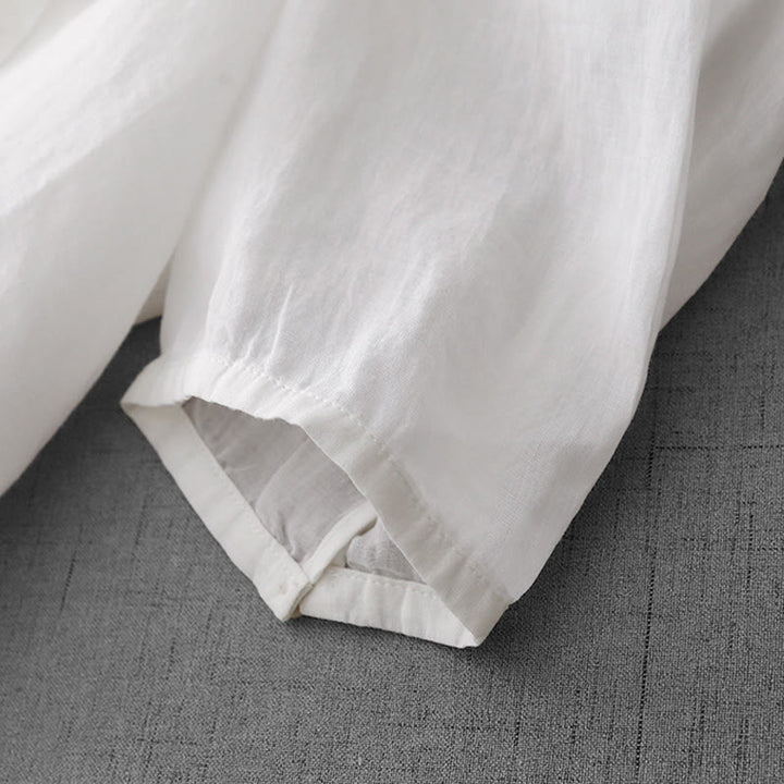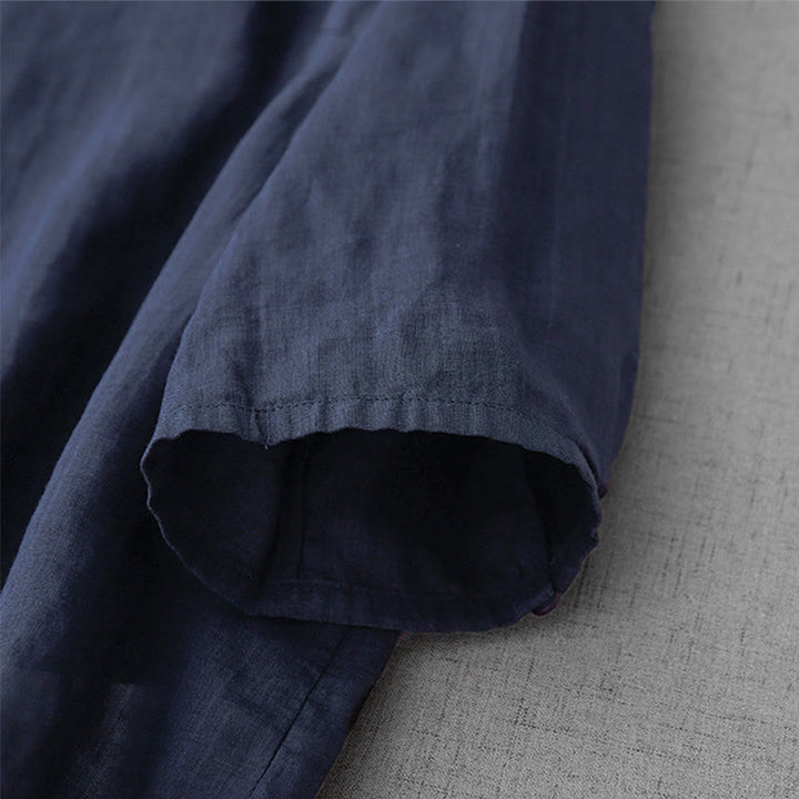 Cárdigan de algodón de media manga para mujer con diseño de botones delanteros bordados en colores puros y Buddha Stones