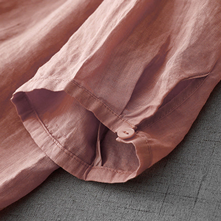 Cárdigan de algodón de media manga para mujer con diseño de botones delanteros bordados en colores puros y Buddha Stones - image 29