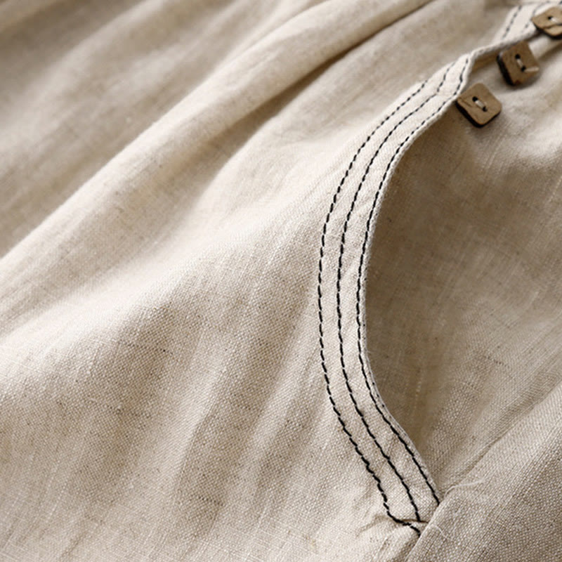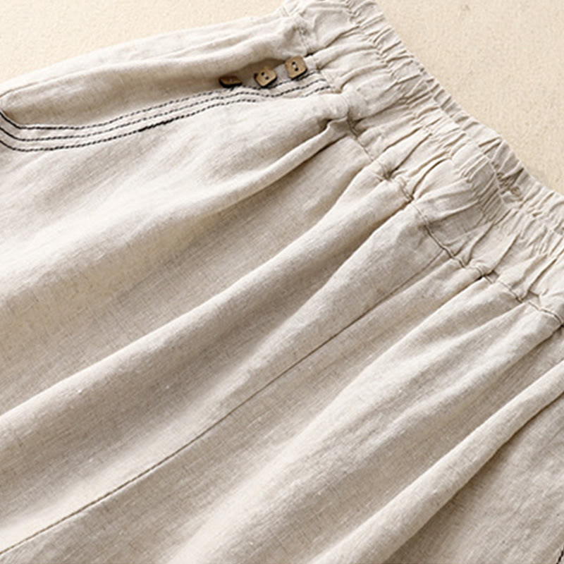 Pantalones harén de algodón para mujer con bolsillos y diseño informal de botones de colores puros Buddha Stones Commute, longitud 7-8 - Lino - US8-10,UK/AU12-14,EU40-42 (2XL) - image 3
