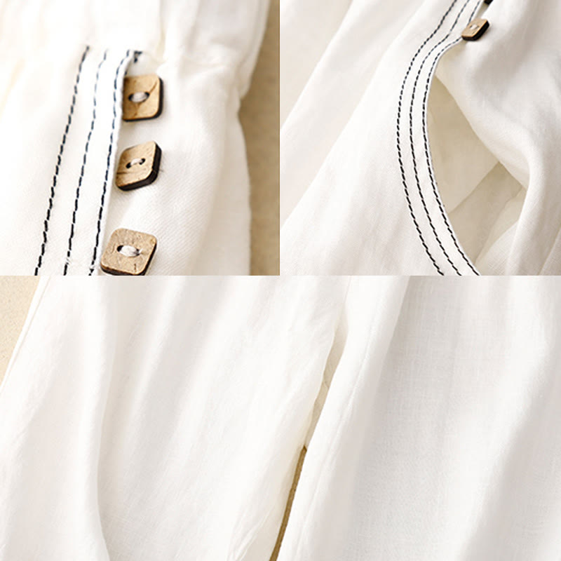 Pantalones harén de algodón para mujer con bolsillos y diseño informal de botones de colores puros Buddha Stones Commute, longitud 7-8 - image 12