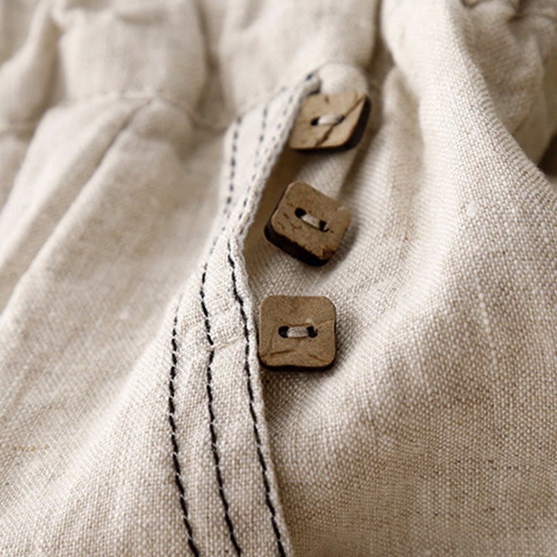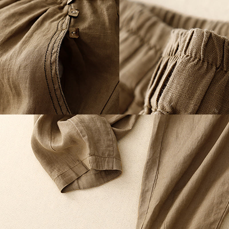 Pantalones harén de algodón para mujer con bolsillos y diseño informal de botones de colores puros Buddha Stones Commute, longitud 7-8