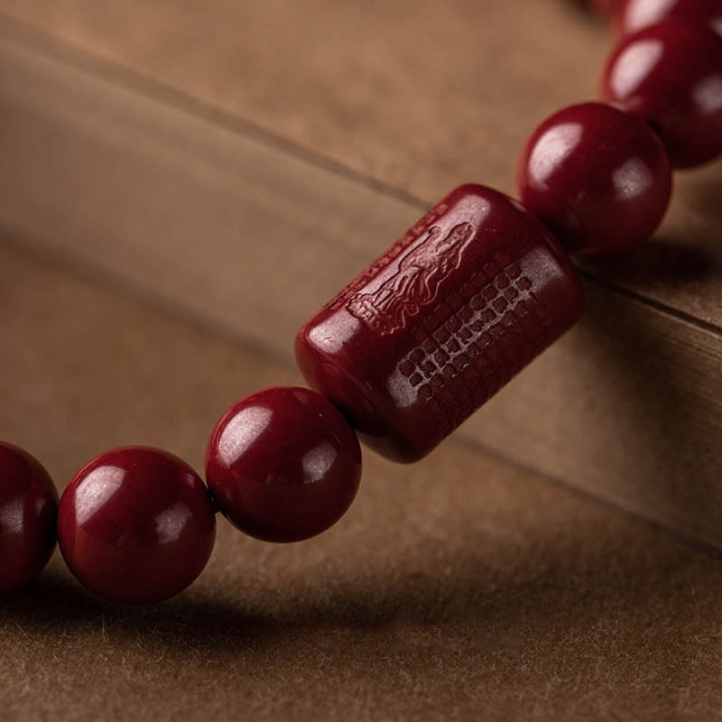 Pulsera de bendición de sutra de corazón de cinabrio natural con Buddha Stones